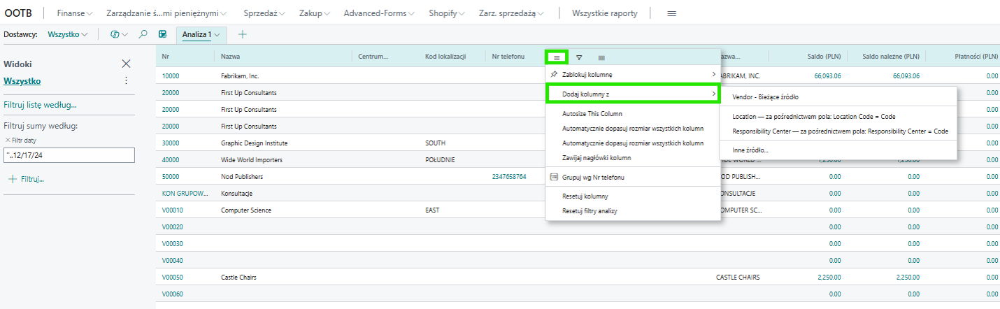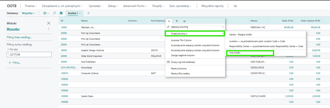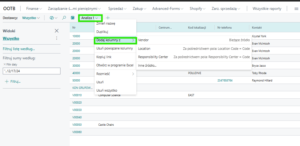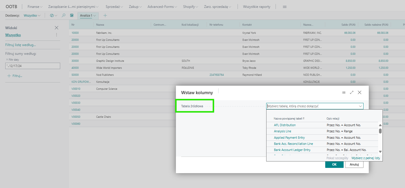 Wraz z aktualizacją 26.2 (czerwiec 2025) Microsoft wprowadza kolejne usprawnienie, które znacząco zwiększa potencjał tego trybu. Od teraz możemy dodawać pola z tabel powiązanych bezpośrednio w Analysis Mode. Co to oznacza w praktyce? Na przykład – analizując listę dostawców, możemy wzbogacić widok o dodatkowe kolumny z innych tabel.