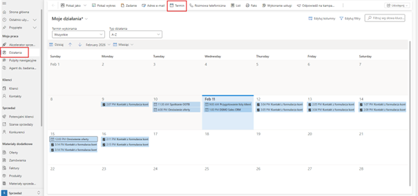 Obszar Działania → Kalendarz