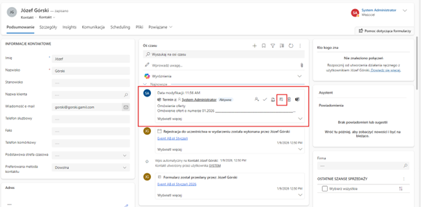 • Spotkanie pojawi się na osi czasu rekordu