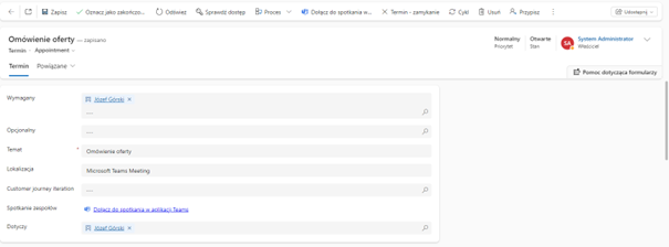 2. Tworzenie spotkania w Dynamics 365