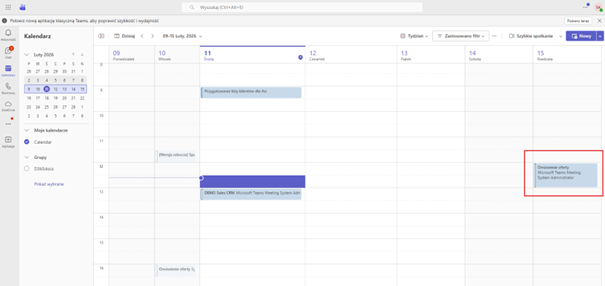 W kalendarzu Teams:
